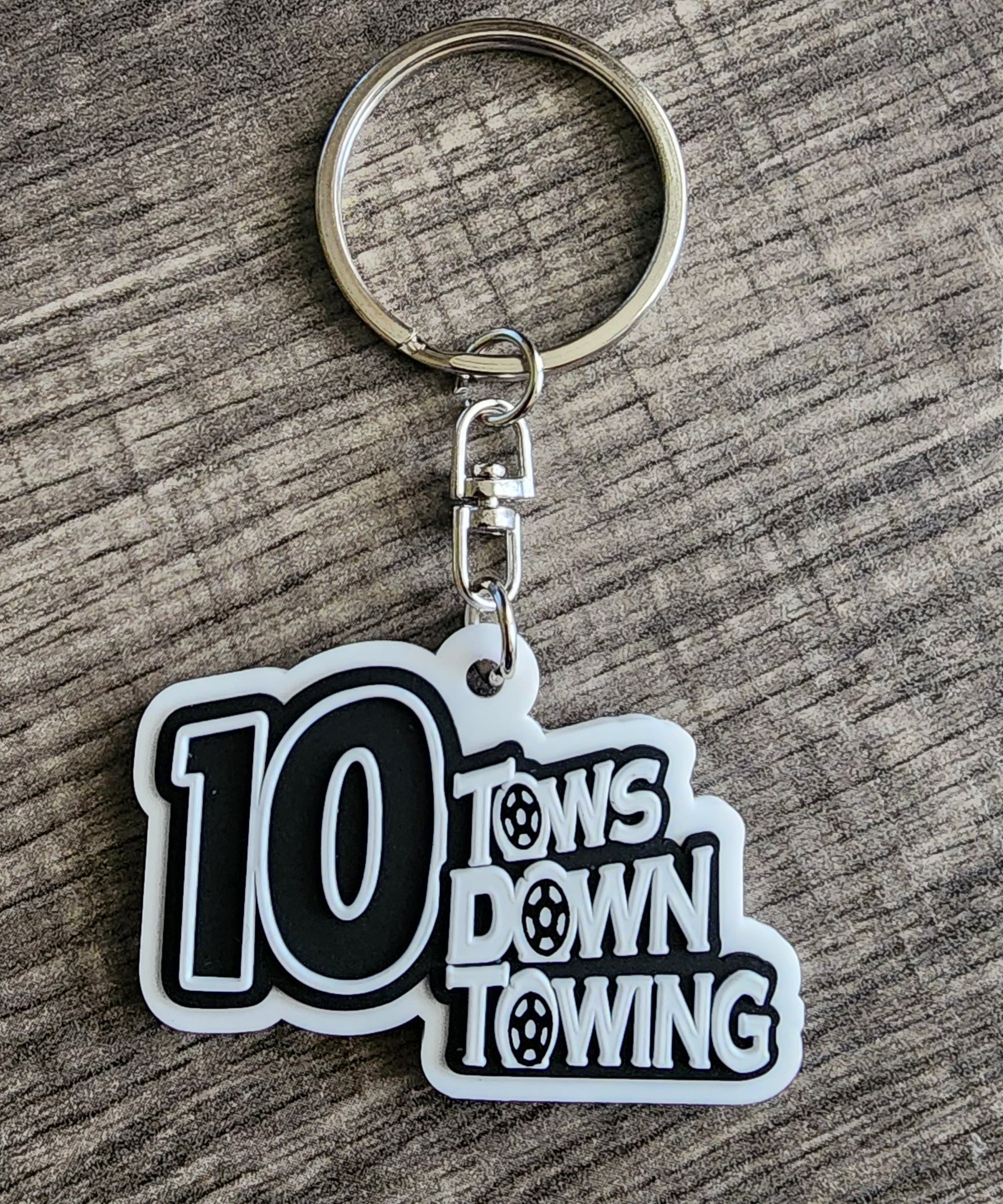 Support the 10 Tows Down Towing journey with a custom made 3D Embossed keychain
